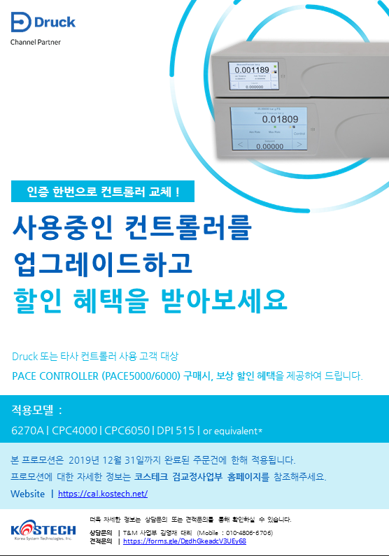 Druck 또는 타사 컨트롤러 사용고객 대상, PACE CONTROLLER (PACE5000, PACE6000) 구매 시 보상할인혜택을 제공하여 드립니다.